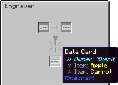 To actually engrave an item, you put the Data Card in the first slot, and the item you want to engrave in the second slot.
