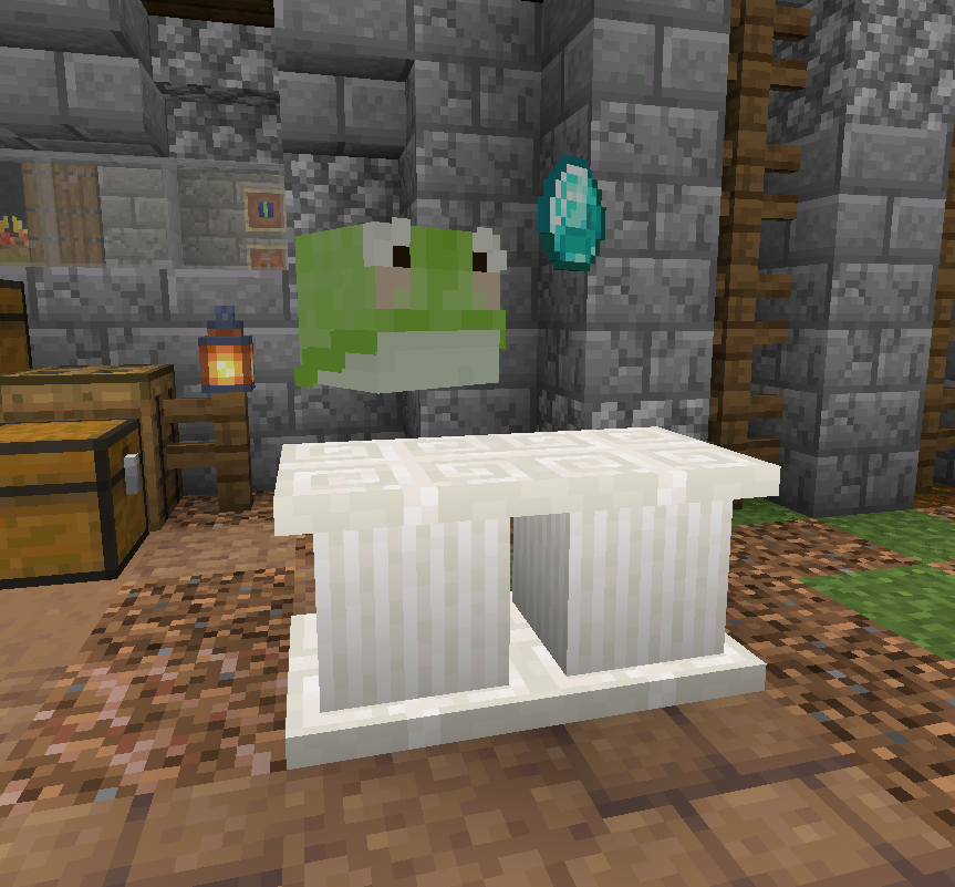 The displayed item will appear as if it were being worn on a player's head, which means different items will be displayed differently. Most blocks will appear in a manner similar to player heads, while most items will appear above and behind where the head would be.