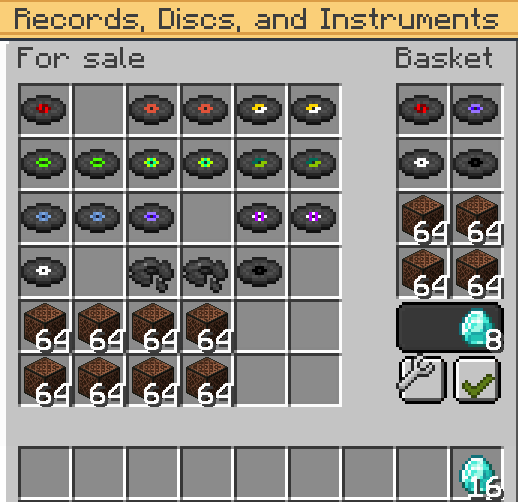 Items can be purchased from shop chests using the currency requested in the bottom right corner.