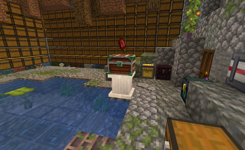 - Place a half-block (e.g., a shop chest) atop the pedestal → The item renders slightly smaller and higher, mimicking the old floating behavior.
